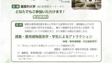おでかけ情報 2026.5.9(土)星薬科大学 薬草園イベントのお知らせ 日本中医薬膳学会では、薬膳・中医学に関連するイベント情報をご紹介しております。今回は、星薬科大学 薬草園にて開催されるイベントをご案内いたします。薬膳や中医学に興味のある方、自然の薬草に触れてみたい方におすすめのイベントです。2026年度 ... 2026.04.22 おでかけ情報