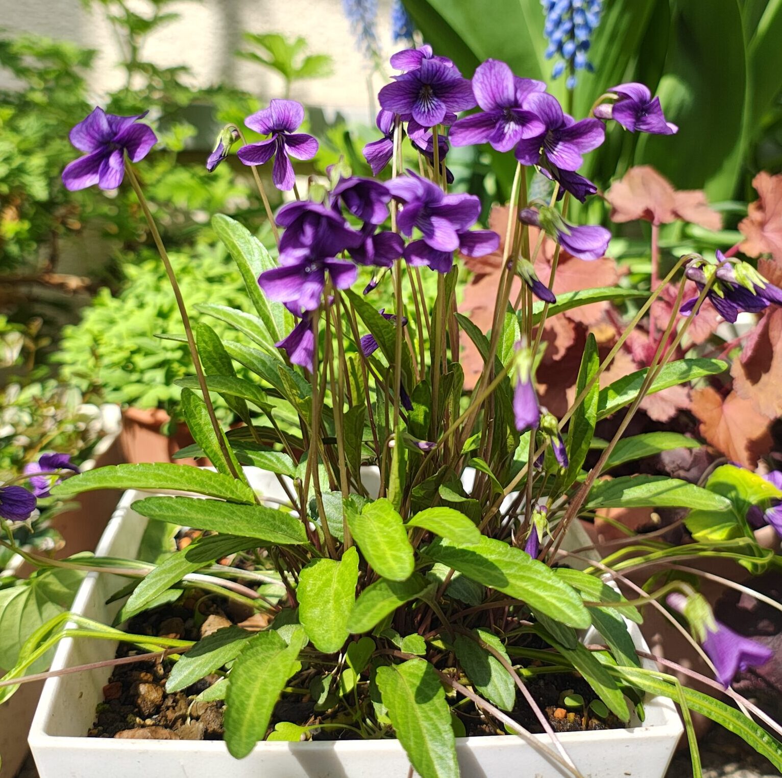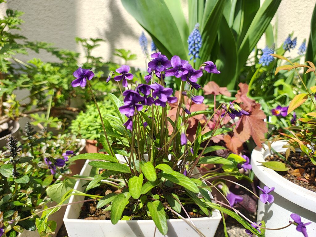 スミレは簡単に育てることができ、プランターや庭に一度植え付ければ、特に虫もつかず、こぼれ種で自然に増え、毎年春先に可憐な花を咲かせてくれます(増えすぎて困ることも!)。最近では園芸店やネットショップでも、様々なスミレの苗を見つけることができます。