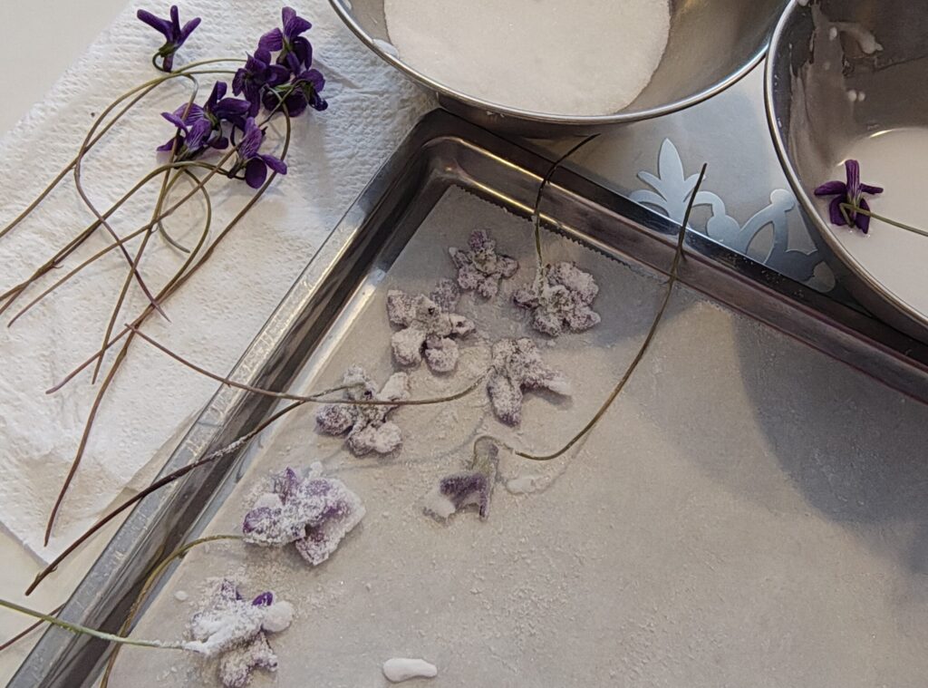 今回は開いた花を少しいただいて、砂糖漬けにしてみました。